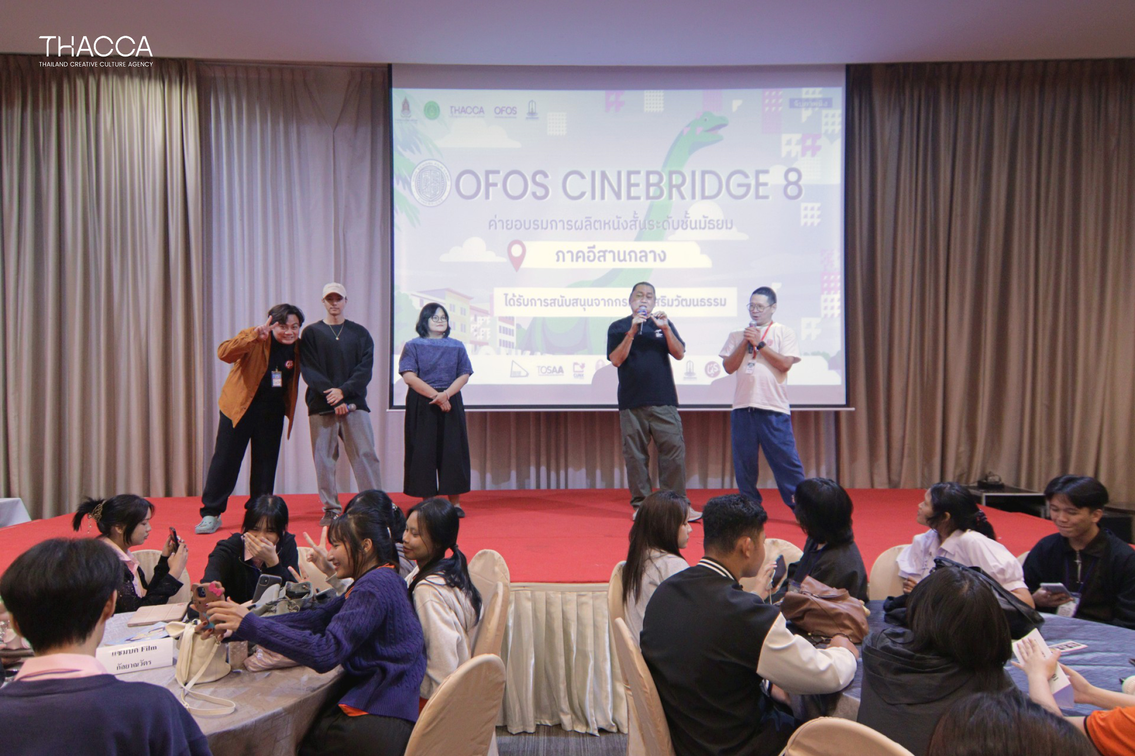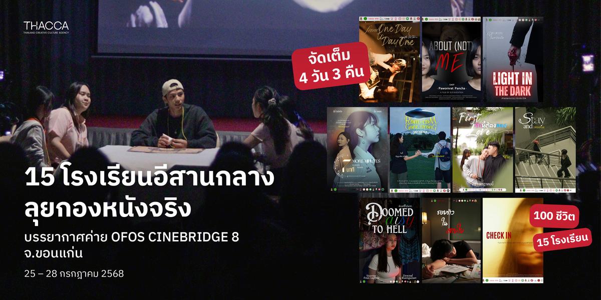 โครงการ ค่ายพัฒนาศักยภาพด้านการผลิตภาพยนตร์สำหรับนักเรียนมัธยมศึกษา OFOS CINEBRIDGE 8 ภาคอีสานกลาง จัดขึ้นระหว่างวันที่ 25 – 28 กรกฎาคม 2568 ณ โรงแรมกรีน โฮเต็ล แอนด์ รีสอร์ท จังหวัดขอนแก่น เปิดเวทีการเรียนรู้ด้านการผลิตภาพยนตร์ให้กับนักเรียนมัธยมกว่า 100 คน จาก 15 โรงเรียนทั่วภาคอีสานกลาง รวมทีมเข้มแข็งเพื่อฝึกฝนและลงสนามจริงตลอด 4 วัน 3 คืน